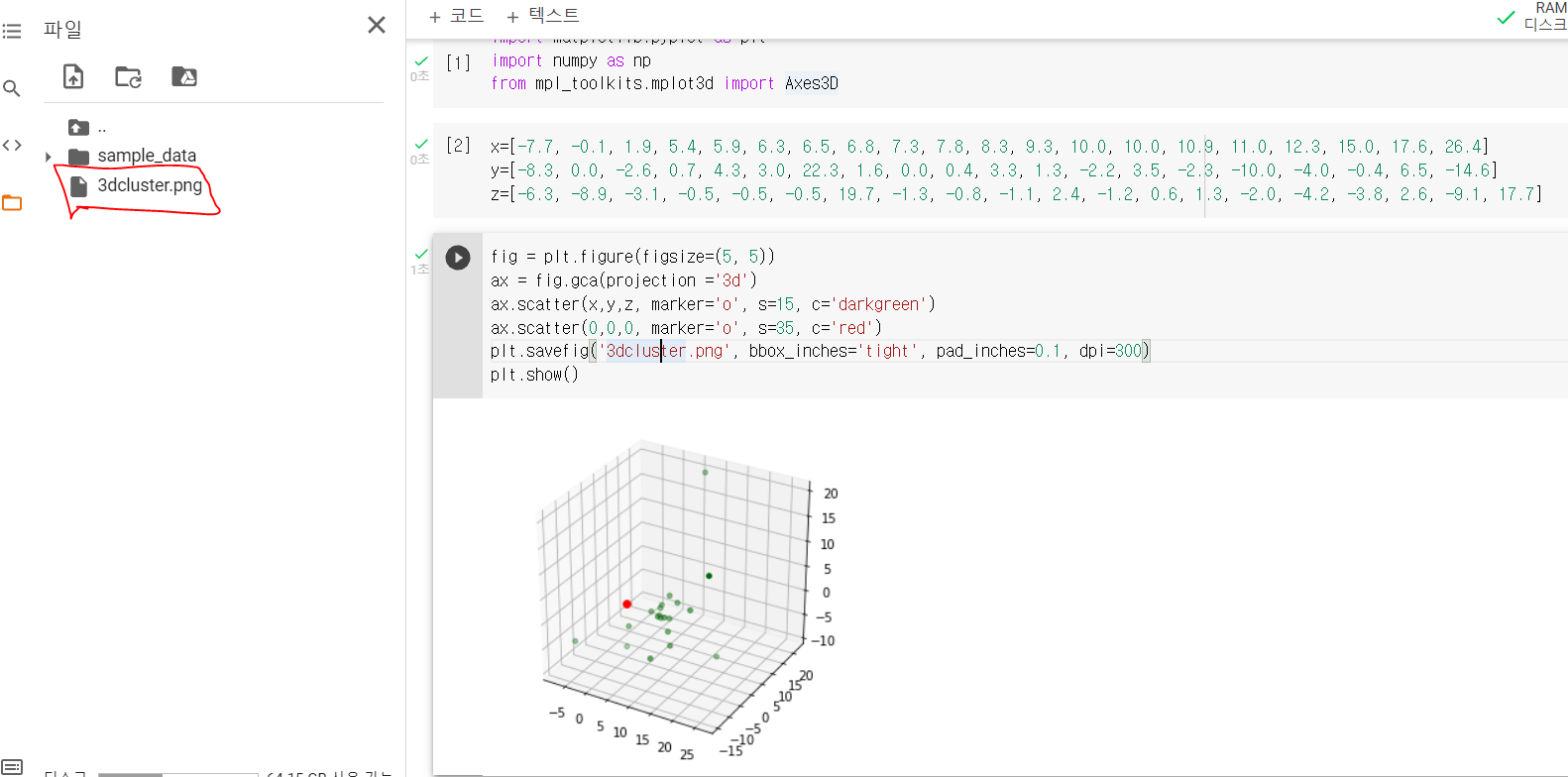 다음은 첫 번째 과정에서 했던 것과 같이 3D Scatter를 그려주면 됩니다.