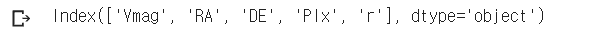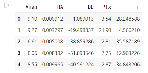다 지우고 나면 Vmag, RAICRS, DEICRS, Plx 가 남습니다.