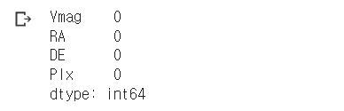 이제 네 개의 변수가 남았습니다. 마지막 행 번호를 보니 118219네요. 즉, 118218개의 항성 데이터가 있습니다.