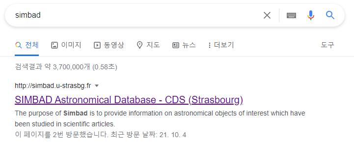 크롬을 여시고 구글 검색창에 SIMBAD라고 검색합니다.