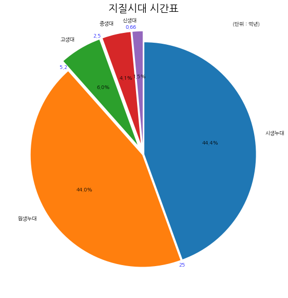 아무튼 지질시대 파이차트 그리기는 여기서 마무리하겠습니다. 감사합니다.